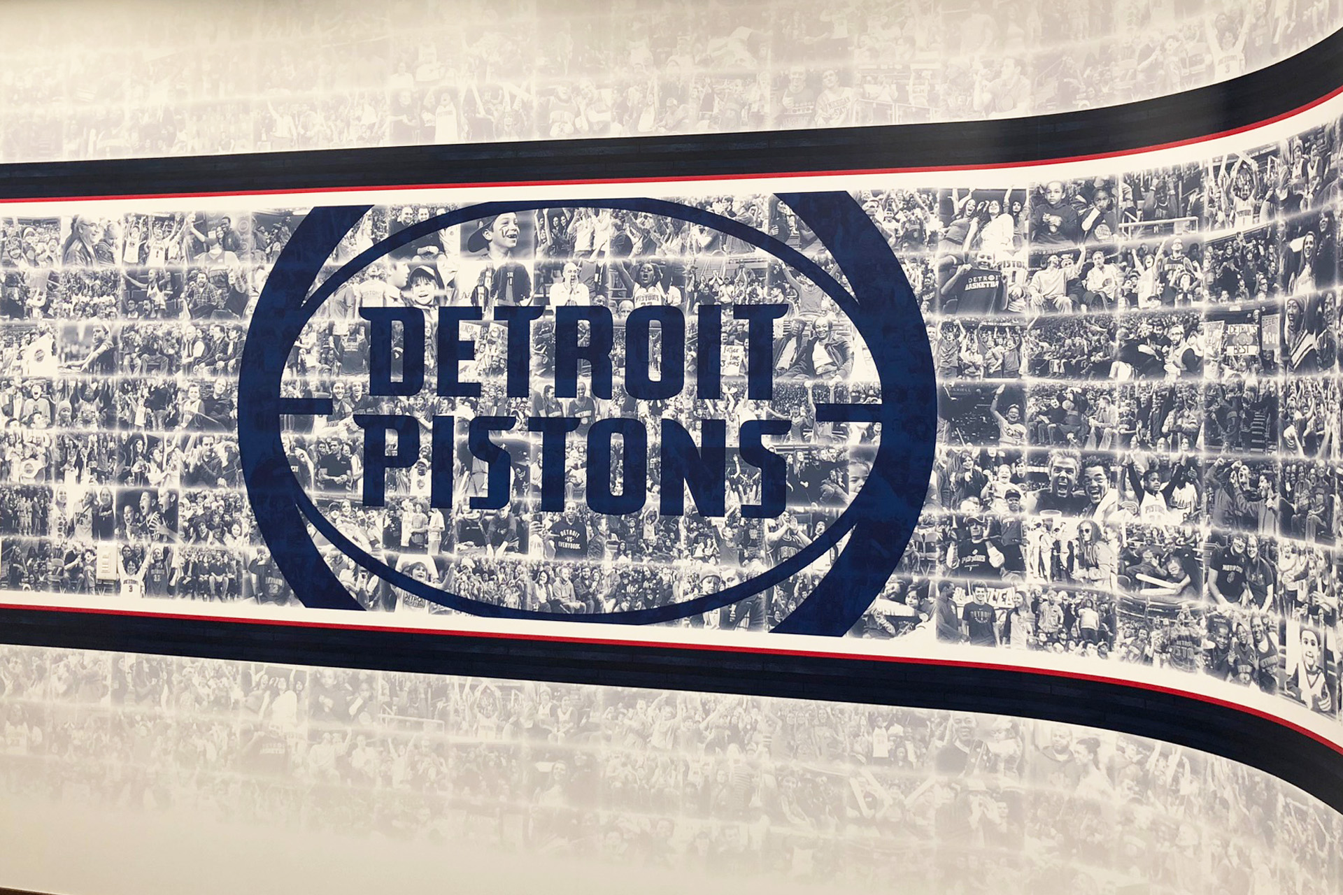 As part of the Detroit Pistons move to Little Caesars Arena, we produced and installed graphics in their team locker room that included vinyl wall graphics and personalized locker headers.